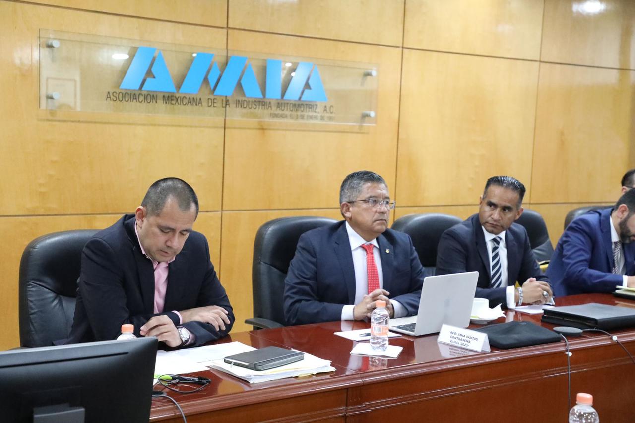 •En mesa de trabajo, el titular de la SSP y representantes de la Asociación Mexicana de la Industria Automotriz intercambiaron información para desplegar operativos más precisos.