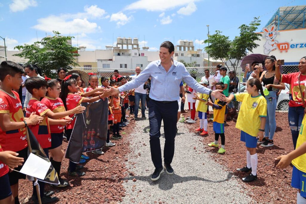 El Presidente, Alfonso Martínez también inauguró oficialmente la cancha en Villas del Oriente, en donde dio la patada oficial frente a decenas de equipos infantiles que ahora contarán con un lugar para divertirse.
