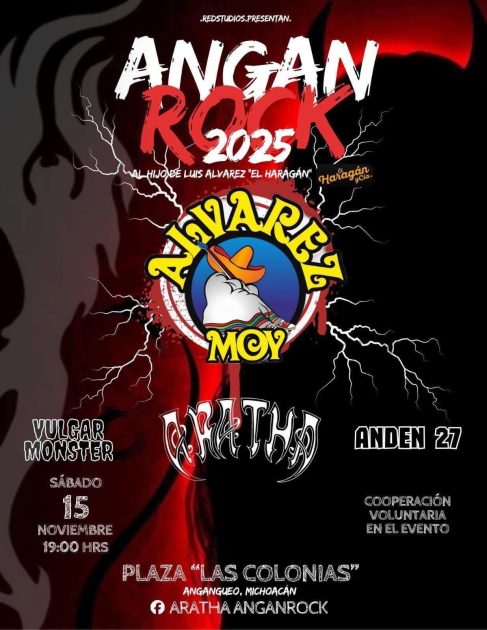 Detallaron que el programa de actividades comienza el 15 de noviembre a las 19:00 horas con la participación de grupos como la Banda Andén 27, Vulgar Monster, Aratha, Moy Álvarez, hijo de Luis Álvarez “El Haragán”, figura emblemática del rock mexicano.
