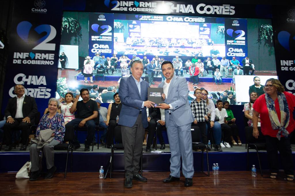 Navarro García reconoció, a nombre del Gobierno de Michoacán, la labor que desarrollan el alcalde Salvador Cortés Espíndola, los integrantes del cabildo, los funcionarios, y los empleados de esa administración, conjuntamente con la población, para diseñar y presentar verdaderos proyectos de impacto social y propiciar la estabilidad, el orden, el trabajo, la tranquilidad y las condiciones para que Charo se coloque en un modelo ejemplar de municipio.