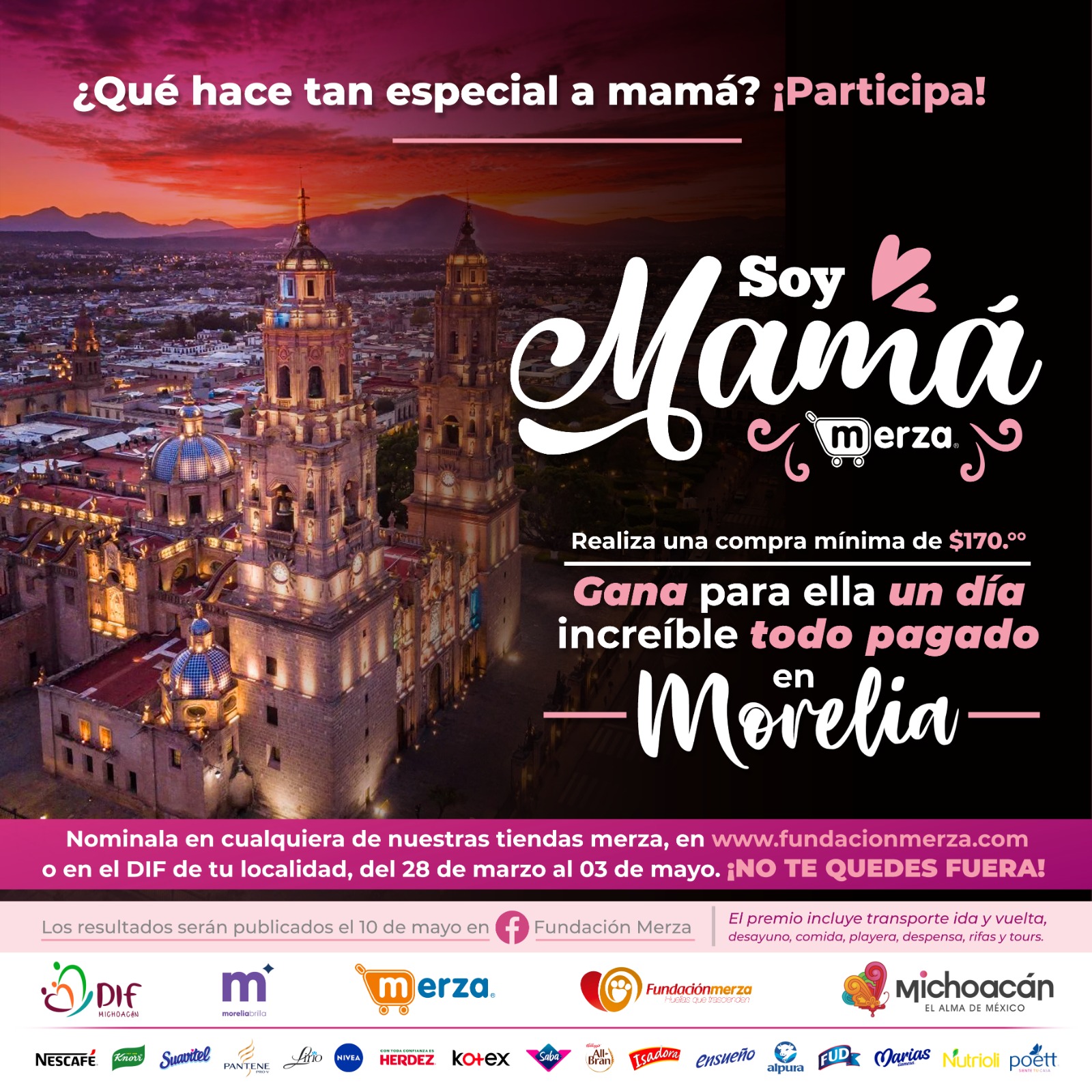 *Morelia, Michoacán, 24 de abril de 2023.-* ¡Llegó nuestro gran evento!, Fundación Merza reconocerá el valor de las madres de familia a través del evento Soy Mamá Merza, el cual seleccionará a 100 madres ganadoras en este 2023 que tendrán la oportunidad de vivir un recorrido turístico en la capital del estado, así como desayuno, comida, regalos, rifas y muchas sorpresas más.