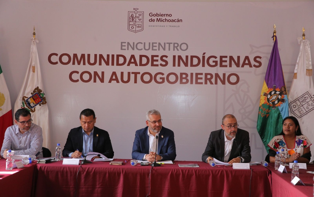 *Morelia, Michoacán, 26 de julio de 2023.-* En reunión con las comunidades indígenas de Pamatácuaro y San Isidro, pertenecientes al municipio de Los Reyes, el gobernador Alfredo Ramírez Bedolla resaltó que desde Michoacán, México reconoce que los pueblos indígenas pueden organizarse a través del sistema de autogobierno.