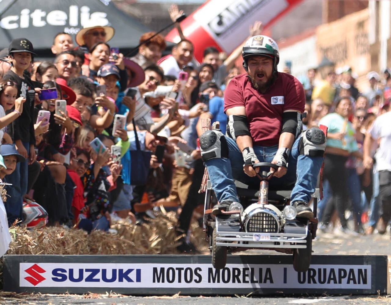 La competencia de carros locos atrajo a una multitud entusiasta que se congregó a lo largo de la avenida Morelos Norte en el Barrio del Carmen para presenciar la destreza y la imaginación de los participantes. A las 9:00 am en punto, la pista de carros locos se abrió para los valientes equipos que habían trabajado arduamente en la creación de carros únicos y extravagantes, inspirados en el Patrominio Cultural moreliano.