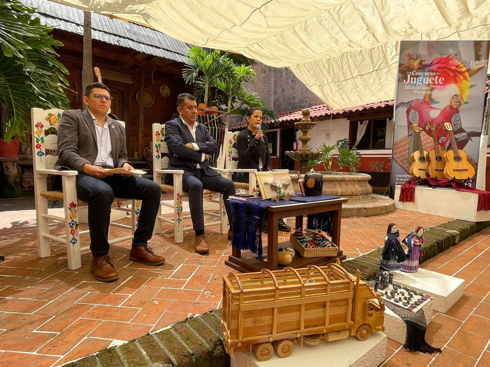 También se llevó a cabo el XXIX Concurso Estatal de Juguete Popular Michoacano, en el que participaron 255 personas artesanas de 22 localidades con 440 piezas inscritas en las ramas de madera, alfarería, textiles de algodón, fibras vegetales, y en este certamen el IAM, Fonart y municipio, para otorgar 23 premios por un monto de 100 mil pesos.