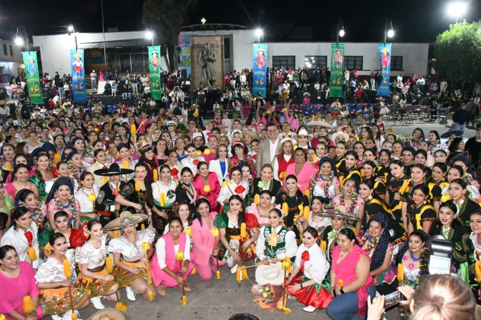 Ario, Mich., a 16 de noviembre de 2025.- Memo Valencia se convirtió en padrino de las 40 generaciones de Las Bastoneras de Ario de Rosales, que son consideradas Patrimonio Cultural Inmaterial de este municipio.