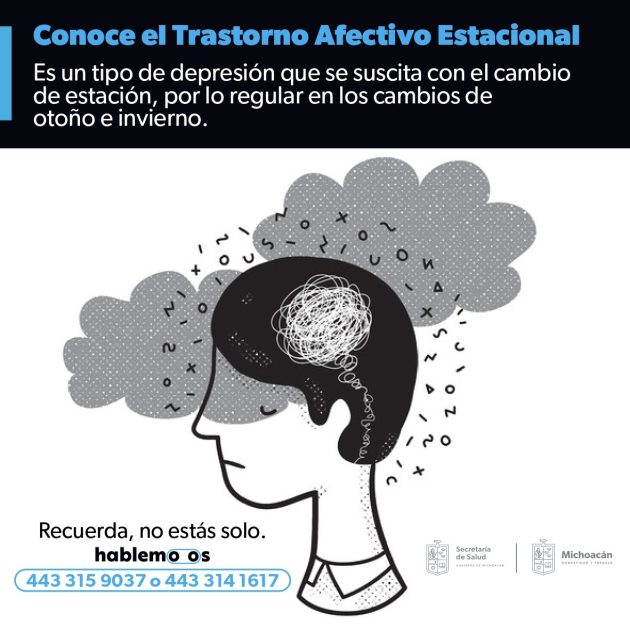 Morelia, Michoacán, 28 de noviembre de 2025.- Con la llegada de la temporada invernal, en la cual hay menor exposición solar, se registra el incremento de casos de trastorno afectivo estacional (TAE), por lo que la Secretaría de Salud de Michoacán (SSM) exhorta a la población a estar atenta a los cambios de ánimo, y recuerda que tiene a su disposición una sólida red de apoyo profesional para la salud mental.