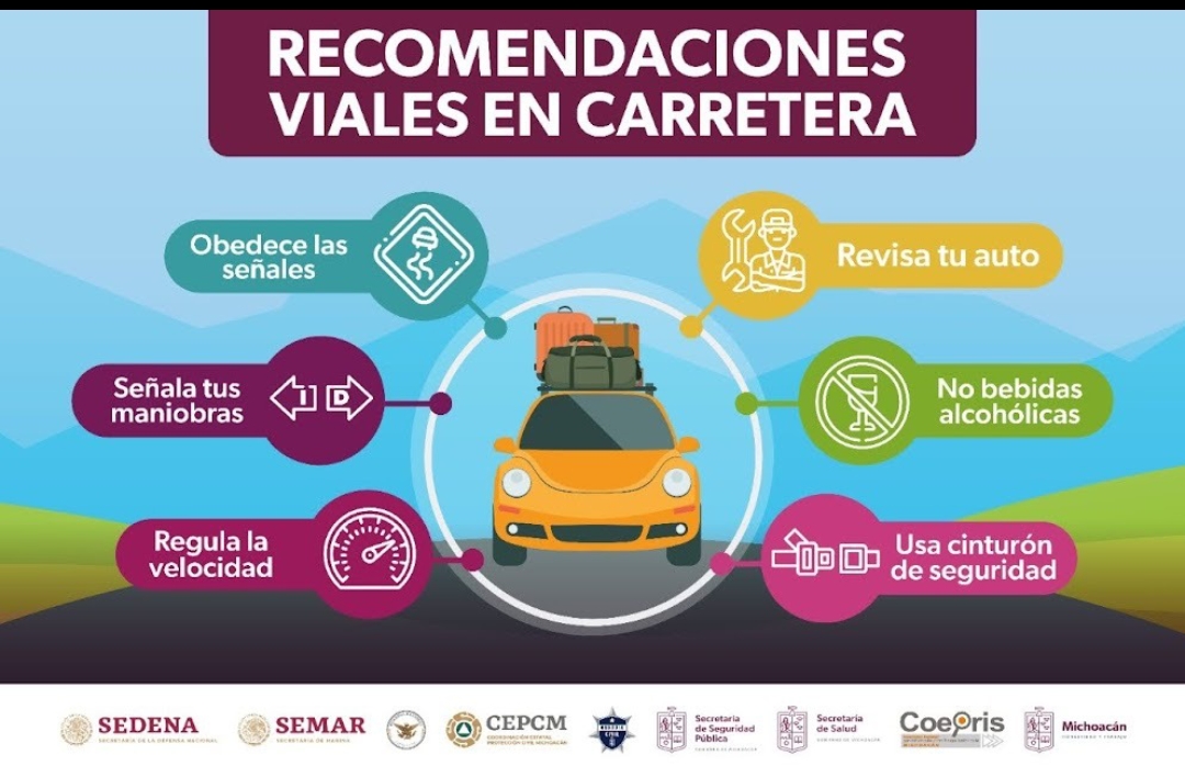 El coordinador del programa de Prevención de Accidentes y Seguridad de la SSM, José Antonio Vidales Sánchez, señaló que antes de emprender un viaje se debe verificar el estado general del automóvil con un mecánico para que revise el estado del motor, las llantas, los frenos, y el volante, y conocer las condiciones en las que se encuentran y el vehículo pueda responder ante una emergencia.