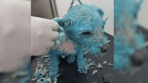 “Muñeca”, así se llamaba la perrita a la que posteriormente bautizaron como la Perrita Azul, fue totalmente pintada con pintura de ese color, pero la Procuraduría General de Justicia de Michoacán aseguró que Muñeca no había sido, intencionalmente, teñida con pintura de aceite azul, sino que cayó en una cisterna que había sido pintada recientemente y así fue como la totalidad de su cuerpo se llenó de pintura.