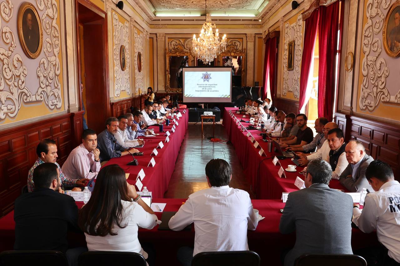 Morelia, Michoacán; 26 de junio de 2023.- En mesa de seguridad, el Presidente Alfonso Martínez Alcázar, reconoció el trabajo y la actuación de la Policía Morelia en los operativos que realiza para evitar que la ciudadanía sea víctima de extorsiones virtuales.
