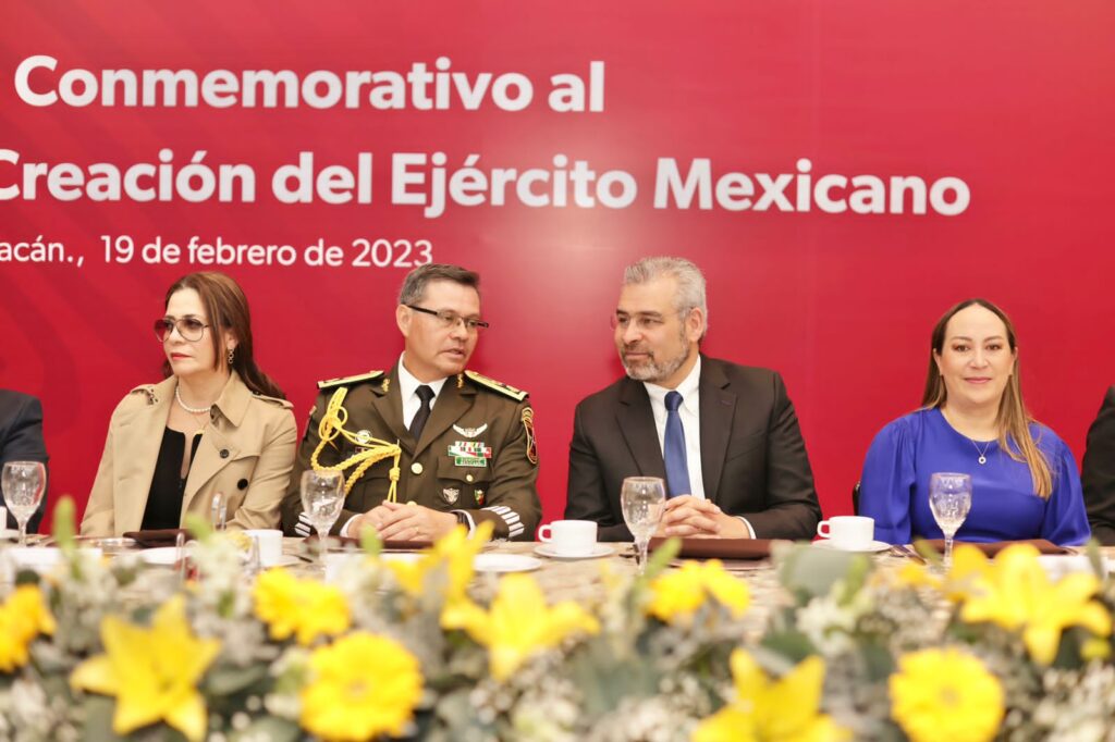 Morelia, Michoacán, 19 de febrero del 2023.- Al asistir al XC aniversario de la creación del Ejército Mexicano, el gobernador Alfredo Ramírez Bedollla, reconoció el compromiso de las Fuerzas Armadas con el gobierno Federal y Estatal.