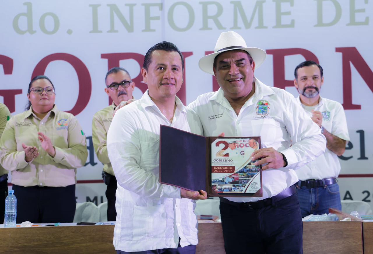 *Coahuayana, Michoacán, 7 de agosto de 2023.-* Con obras e inversión estamos trabajando estado y municipio en la reconstrucción de Coahuayana, destacó el secretario de Gobierno, Carlos Torres Piña, en el Segundo Informe de actividades del Ayuntamiento que encabeza Gildardo Ruiz Velázquez, al que acudió con la representación del gobernador Alfredo Ramírez Bedolla.