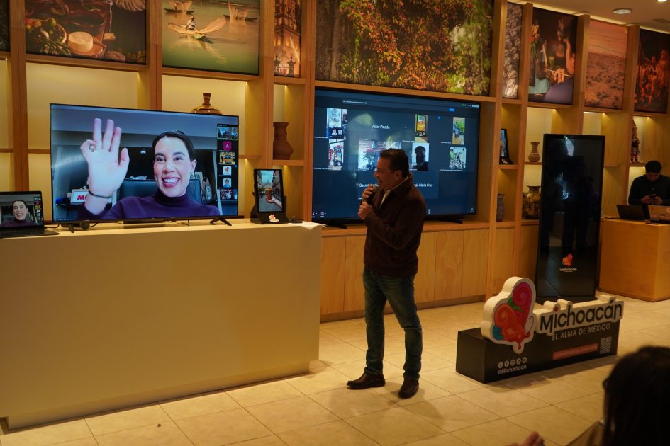 Durante la presentación también estuvieron conectados representantes de las regiones turísticas de Michoacán para activar sus kioskos, quienes también se sumaron al cuidado del medio ambiente al reducir el uso de papel en los folletos. “Además de ser interactivos, hay unos kioskos más grandes que serán para los aeropuertos y las centrales de autobuses”, concluyó el titular de la política turística de Michoacán.