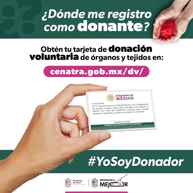 El fomento a la cultura de la donación de órganos en Michoacán es primordial para contrarrestar la lista de espera de 131 personas del Consejo Estatal de Trasplantes (Coetra) quienes están a la espera de mejorar su calidad de vida con un nuevo riñón o una cornea.