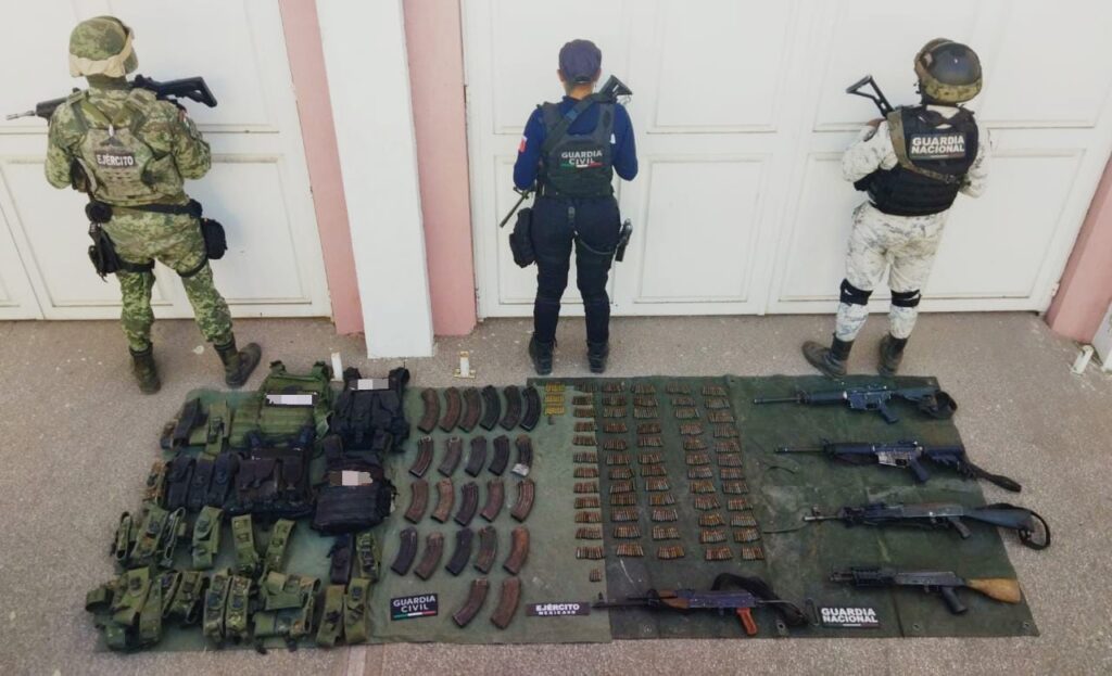 Tras repeler la agresión, los efectivos de SP lograron asegurar a un hombre como presunto implicado; asimismo, se localizaron dos armas de fuego AR-15 y tres más tipo AK-47, junto a 636 cartuchos útiles, 23 cargadores, ocho placas balísticas, cuatro chalecos tácticos y cinco fajillas con cartucheras. También, decomisaron 12 explosivos de fabricación casera y dos granadas de fragmentación -mismas que fueron destruidas por personal especializado del Grupo de Respuesta a Emergencias (GRE) de la Sedena-.